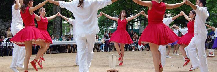 Kataloniens Nationaltanz ist komplizierter als es scheint. Die Tänzer müssen die kurzen und langen Schritte und Sprünge genau abzählen - daher vielleicht die ernsten Gesichter. Für die Musik sorgt die cobla, ein elfköpfiges Orchester mit einem leitenden Musiker, der eine dreilöchrige Flöte (flabiol) und eine kleine Trommel (tabal) spielt, fünf Holz- und fünf Blechbläsern.