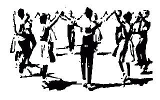 Die Tänzer fassen sich im Kreis an den Händen, wie in einem Reigentanz bewegt sich der Kreis links und rechts herum, in wechselndem Tempo, jedoch meist langsam, konzentriert und ernst.